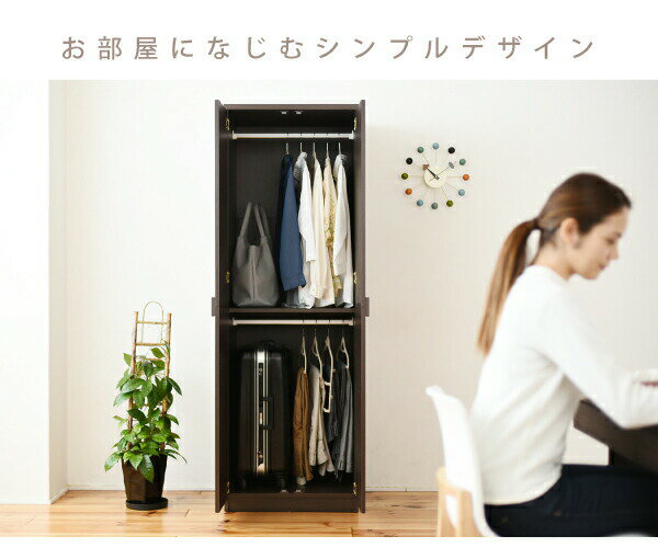 ■本体サイズ[外寸] 幅59.5×奥行53.5×高さ180cm■その他サイズ[内寸] (扉内)幅55×奥行48×高さ166cm (上段ハンガーバー)幅54.5×高さ(可動棚最上段)68.5〜(可動棚最下段)97.5cm (下段ハンガーバー)幅54.5×高さ(可動棚最上段)80〜(可動棚最下段)54.5cm(3.2cmピッチ10穴) (可動棚)幅55.5×奥行47.5×厚み1.7cm(3.2cmピッチ10穴)■材質[本体]プリント紙化粧合板■収納量・耐荷重【耐荷重】 [ハンガーバー]約12kg以下 [可動棚]約20kg以下 【ハンガーバー収納量】 [衣類]約20〜36着■備考・可動棚:1枚 ・六角レンチ同梱■生産国ベトナム■組立時間(目安)(大人2人)お客様組立(90分)■キーワードロッカー ブレザーダンス ロッカーダンス 収納 服 衣服 タンス 箪笥 たんす 整理 衣類の整理 家具 ワードローブ 洋服 ハンガーラック 服 収納 洋服ダンス 洋服タンス 洋タンス 木製 収納タンス ラック 二段 リビング 収納家具 壁面収納 天井 つっぱり 吊るす 組立式 60cm 幅 W60 H180 扉 壁面 アイデア 収納術ひとり暮らし 一人暮らし 新生活 衣類の収納 洋服の収納 木製ハンガー ホワイト 白 ブラウン ダークブラウンメーカー希望小売価格はメーカーカタログに基づいて掲載しています